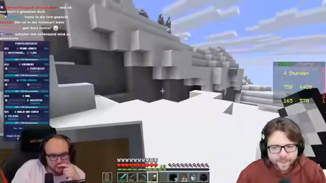 03:33:31Die Aktivitäten verlagern sich in den Nether. Ein unsichtbarer Händler wird aufgesucht, um benötigte Gegenstände wie Sättel und Angeln zu handeln. Für den Schreiter-Ritt wird eine Angel und eine Wirrpilzrute benötigt. Der Streamer platziert eine Kesselschüssel mit Wasser als Notfalllösung gegen Feuer im Nether. Der Fokus liegt auf dem Sammeln von Ressourcen wie Glowstone und der Vorbereitung auf das Töten von Schreitern.