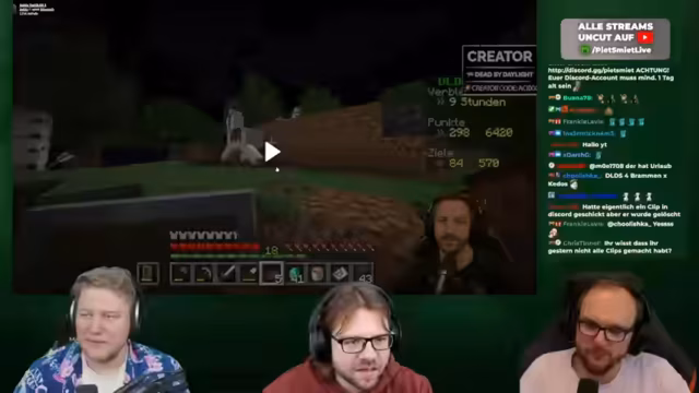 00:05:13Die Streamer beginnen mit der Sichtung der eingesendeten DLDS-Clips, wobei sie feststellen, dass die Menge der Clips es unmöglich macht, alle zu zeigen. Sie starten mit dem DLDS-Intro von Kedos, wobei die Lautstärke des Tons geprüft wird. Es folgen humorvolle Kommentare über die Länge von Kedos' Intro und eine Diskussion über eine fehlende Kontaktaufnahme via WhatsApp. Die Aufzeichnung für Pietsmiet TV wird gestartet, und die Streamer reagieren auf den dritten Tag von DLDS. Ein Clip über Kedos' Tod wird gezeigt, was zu Verwirrung führt, da das Intro nach seinem Tod kam. Ein weiterer Clip zeigt Asics' Tod durch einen Creeper, der aufgrund eines Server-Pings explodierte, bevor das Schild aktiviert werden konnte. Diese technische Erklärung wird von einem Notariat bestätigt, was zu weiteren humorvollen Spekulationen führt. Die Streamer drücken ihr Mitgefühl für Asics aus und vergleichen den Vorfall mit Lags in CS, die zu unglücklichen Toden führen können.