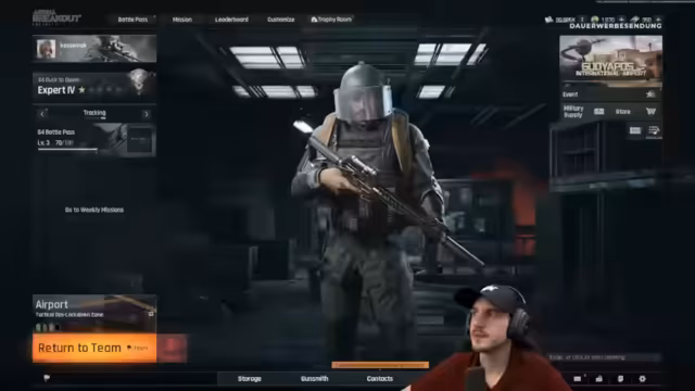 03:34:42Nach einem lootsicheren Raid beginnen die Streamer mit der Organisation und der Vorbereitung für die nächste Runde. Christian erhält eine Ranking-Aufstufung und es werden Statistiken über den gesammelten Beutewert und die Anzahl der getöteten Gegner angezeigt. Sie wechseln die Map und die Waffenausrüstung. Peter baut eine neue M4 zusammen und Christian plant eine moderne Scharfschützenwaffe, während sie auf die neue Schneemap Northridge umsteigen.