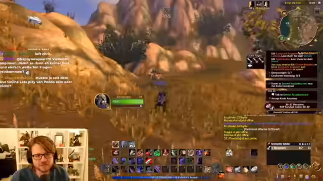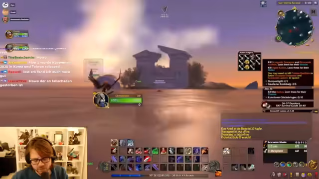 04:46:51Der Streamer befindet sich im Gebiet Desolace in World of Warcraft und führt diverse Quests durch. Er erkundet die Festung Thunder Eggs, sucht nach Schlüsseln für die Schatztruhe und kämpft gegen verschiedene Mobs wie Skelette, Basilisken und Riesen. Dabei unterhält er sich über Schwierigkeiten bei der Jagd auf bestimmte Monster, wie die Meerhexen, welche einen silbernen Schlüssel für die Quest benötigen. Er stellt fest, dass das Gebiet voll mit Basilisken ist, die ihm unerträglich erscheinen, und dass das Sammeln von Kodos und Skorpionen zusätzliche Erfahrungspunkte im Classic-Modus bringt. Der Fokus liegt auf dem Abschluss der Quest 'Carnitols Schiffbruch' und dem Sammeln der notwendigen Schlüssel.