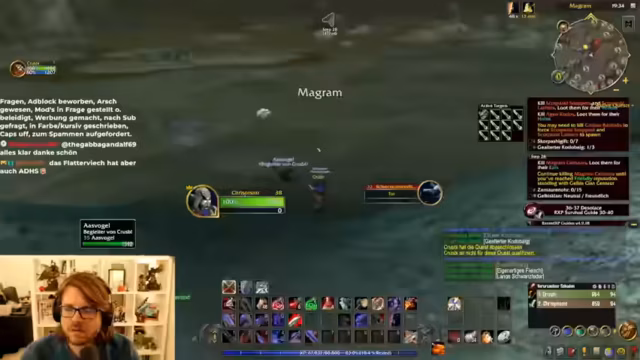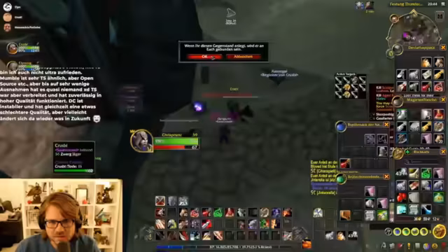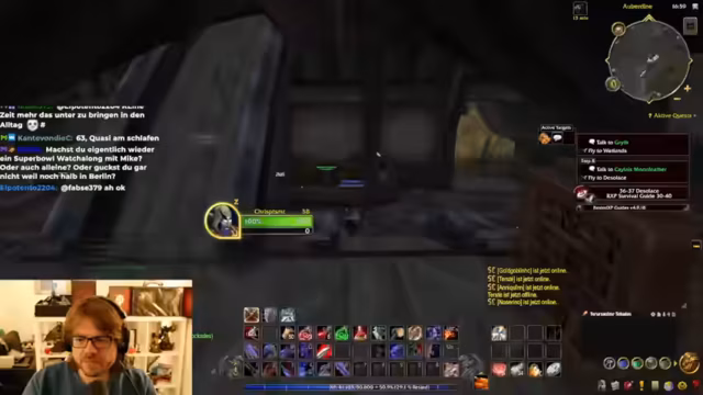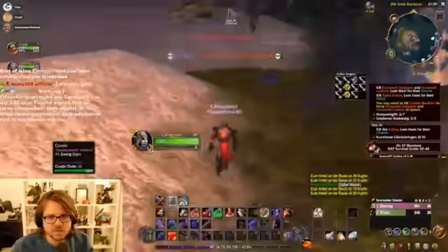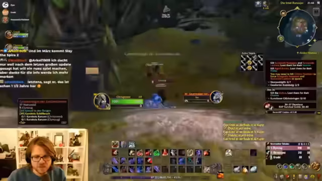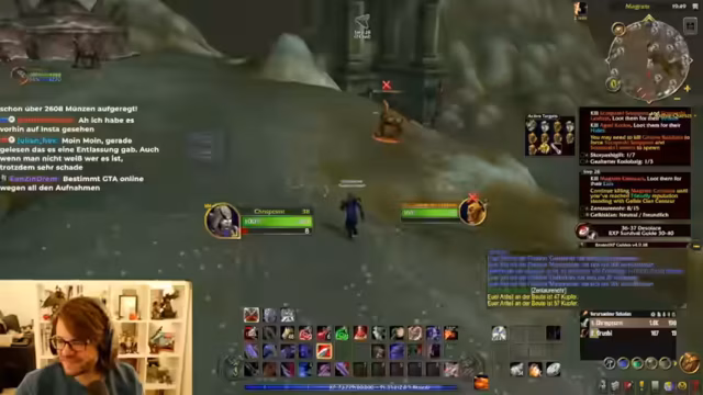03:19:43Der Streamer spielt mit einem Zuschauer zusammen in World of Warcraft, um gemeinsame Quests zu erledigen. Sie sind dabei in Uldaman unterwegs, wo sie nach Schlüsseln suchen und ein Kodokombulator einsetzen müssen, um Kodos zum Folgen zu verlocken. Dieses gemeinsame Spielen wird als sehr positiv empfunden, da es den Spaß am MMO erhöht und den sozialen Aspekt stärkt. Der Streamer bemerkt, dass das gemeinsame Leveln zwar gefährlicher ist, aber auch schneller und vor allem spaßiger.