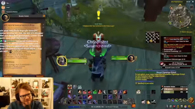 03:50:29Der Streamer muss ein Quiz machen, um seine Fraktion und Klasse zu wählen. Er entscheidet sich für einen Zwerg und diskutiert über die Vor- und Nachteile der Klassen. Er erzählt, wie er Quests annehmen und verwalten muss, und dass sein Questlog schnell voll ist. Er beschreibt auch seine Ausrüstung und wie er versucht, sie zu optimieren, indem er Items wie die "Heizkette" als Questbelohnung nutzt.