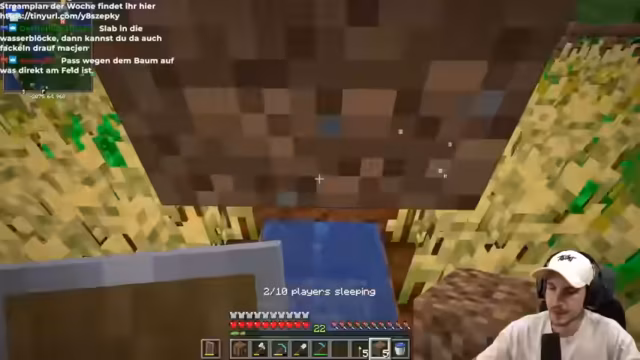04:35:40Die Streamer diskutieren über den Bau eines effizienten Weizenfeldes und einer Brotfarm. Es wird über die Platzierung von Schienen unter dem Feld gesprochen, um Erdblöcke darüber zu setzen, was das Kriechen erspart. Die Idee ist, ein Feld für Brot und ein Feld für Weizen zu nutzen, wobei der Weizen zur Tierfütterung und das Brot für die Spieler und Villager verwendet werden soll. Es wird überlegt, wie ein Villager am besten integriert werden kann, um Weizen automatisch in Brot umzuwandeln. Dabei wird die Platzierung eines Trichters unter einem Zaun oder Fanscape diskutiert, um die Items abzusaugen, bevor sie zu einem anderen Villager geworfen werden. Die Streamer sind begeistert von der Idee eines automatischen Absaugers und planen, zwei Spieler für diese Aufgabe einzusetzen, wobei einer im Feld und der andere außerhalb steht. Es wird auch die Verfügbarkeit der Spieler für den nächsten Tag besprochen, wobei Jay am nächsten Tag nicht dabei sein wird.
