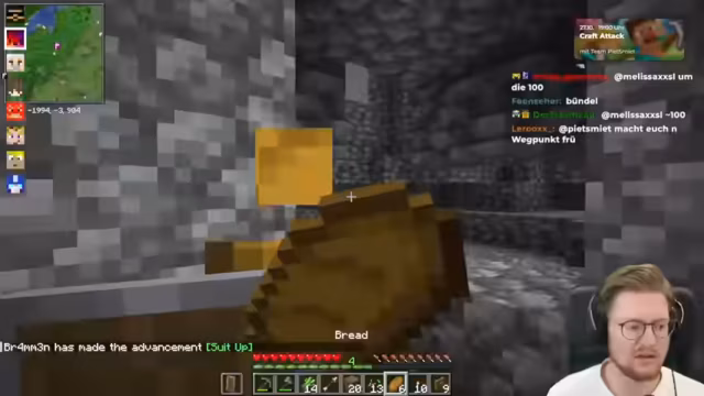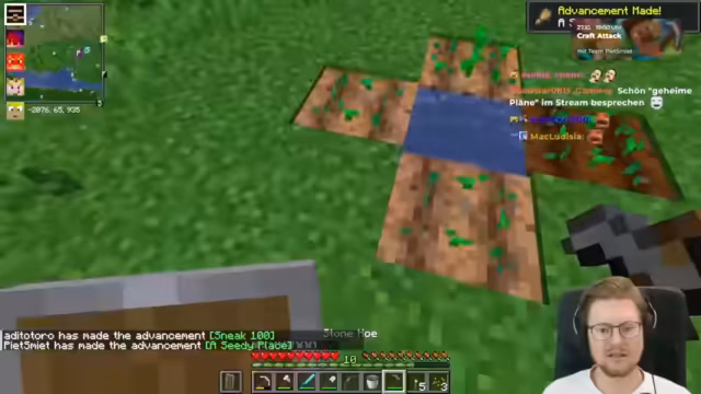 05:13:41Die Streamer diskutieren weitere Optimierungen der Brotfarm. Es wird festgestellt, dass der Villager immer wieder zum Komposter rennt und Bone Meal produziert, anstatt Brot. Die Community schlägt vor, den Komposter mit einem Block oder Falltüren abzudecken, damit der Villager nicht darauf zugreifen kann. Es wird auch die Möglichkeit erwähnt, den Villager einmal zu traden, um seinen Beruf zu sichern und den Komposter anschließend zu entfernen. Der Streamer füttert die Tiere und Villager, um sicherzustellen, dass sie versorgt sind, bevor er offline geht. Er füllt das Inventar des Villagers mit Samen, damit dieser sein Inventar füllen und Brot produzieren kann. Nach weiteren Versuchen und der Erkenntnis, dass der Villager doch Brote produziert, ist der Streamer zufrieden mit dem Ergebnis. Er verabschiedet sich von den Zuschauern und bedankt sich für die Unterstützung, insbesondere bei Spark, der sich für die Teilnahme an Craft Attack eingesetzt hat. Der Stream endet mit der Ankündigung, dass Peter am nächsten Tag um 18 Uhr mit Craft Attack fortfahren wird.