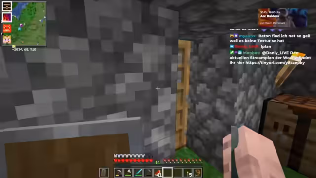 01:46:45Das Team konzentriert sich auf die Beschaffung wichtiger Ressourcen wie Kies für Beton, Nahrungsmittel, Leder und Zuckerrohr. Während Peter sich um die Nahrungssuche kümmert, ist Bram tief im Strip-Mine-Modus, um Kupfer und Diamanten zu finden, wobei er bereits 30 Kupferblöcke gesammelt hat. Die Diskussion über die Notwendigkeit von Fortune-Verzauberungen für effizienteren Diamantenabbau zeigt die strategische Planung des Teams. Gleichzeitig bahnen sich erste Handelsgespräche an: Stegi und Unreacts zeigen Interesse an einer Kooperation, um Güter zu liefern, und werden eingeladen, der Gruppe beizutreten. Die Möglichkeit, Villager zu züchten, wird als potenzielles Geschäftsthema angesprochen, was auf eine frühe Phase der Infrastrukturentwicklung hindeutet.