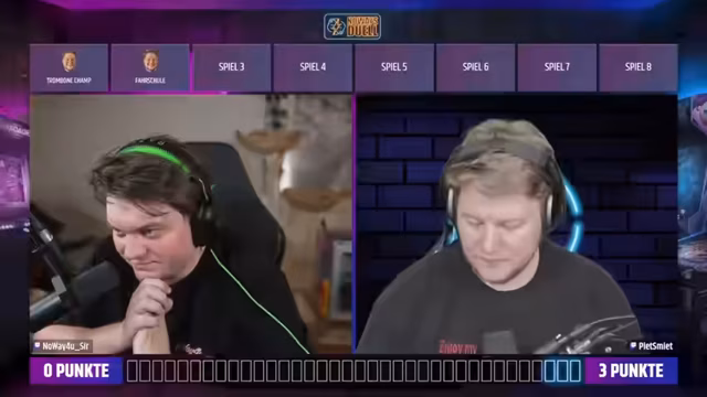 02:27:13Zwei Streamer bereiten sich auf ein Duell vor, bei dem sie verschiedene Spiele gegeneinander antreten werden. Nach einer anfänglichen technischen Vorbereitung werden die Regeln und die Punktwertung erläutert. Ein besonderer Fokus liegt darauf, dass beide Spieler die Spiele nicht im Voraus kennen, um faire Bedingungen zu schaffen. Die Teilnehmer diskutieren mögliche Strafen für den Verlierer und wählen eine Kombination aus physischen und kulinarischen Herausforderungen.