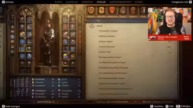 04:25:07Zu Beginn des Streams wird im Spiel Kingdom Come: Deliverance 2 gespielt, wobei der Streamer sein bisheriges Verhalten als 'ehrenhaft' bezeichnet. Es geht um das Zurückholen des Gildenschwerdes und eine Quest im Zusammenhang mit einem 'Donnerkeil'. Nachdem ein Helfer in einer Höhle den Stein gestohlen hatte, wurde er gefasst, der Stein jedoch nicht. Die Auseinandersetzung mit dem gestohlenen Stein und den daraus resultierenden Problemen, wie Pech und Ärger, wird thematisiert, wobei die Moral der Handlungen und der Ehrenkodex im Spiel diskutiert werden.