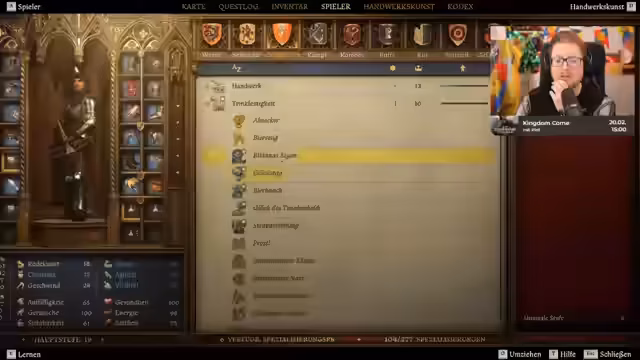 03:55:30Nach den dramatischen Ereignissen lässt Heinrich durch. Er kehrt in die Stadt zurück, um Händler aufzusuchen und das erbeutete Gut zu verkaufen. Dank einer Mod kann er sehen, wie viel Geld die Händler haben und somit den besten Preis erzielen. Er kauft sich neue, bessere Rüstungsteile, darunter Nürnberger Armschienen und verbesserte Schuhe, um seine Kampfkraft zu erhöhen.