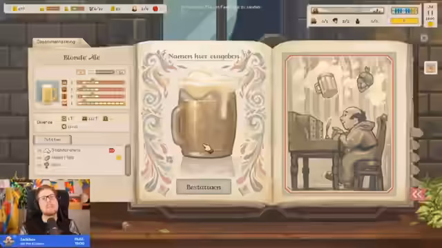 06:54:17Der Spieler lernt die Auftragsfunktion des Spiels kennen. Er kann Bestellungen von Dörfern annehmen und muss versuchen, diese zu erfüllen. Dies gestaltet sich jedoch als Herausforderung, da die Qualitätskontrolle komplex ist. Das gebraute Bier erweist sich als mangelhaft und wird für eine Bestellung abgelehnt, was zu einem Verlust führt. Eine weitere Bestellung für Blond Ale kann erfolgreich angenommen werden, doch auch hier ist die Qualität nicht immer zufriedenstellend, was die Notwendigkeit besseren Rezeptmanagements zeigt.