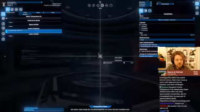 00:20:20Der Streamer zeigt das Handelssystem in X4 auf. Er erklärt, wie man Waren zwischen den Stationen kaufen und verkaufen kann und dabei Gewinn macht. Mit einem Tutorial lernt er, wie er Schiffen Handelsaufträge zuweisen kann, damit sie autonom Handel betreiben. Es wird deutlich, dass das Spiel auch das Management von Schiffen und deren Crew beinhaltet.