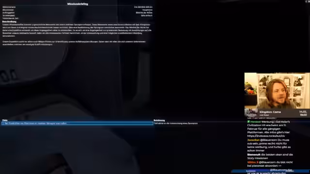02:34:05Der Streamer beschäftigt sich mit verschiedenen Missionen im Spiel, einer Hauptstory-DLC-Mission von den Boronen, die weit entfernt ist und als schwierig gilt. Er diskutiert die Annahme von Missionen, die zur eigenen Fraktion passen, ohne diese zu gefährden, und erwähnt spezifische Aufgaben wie das Untersuchen von Wissenschaftlern und das Jagen von Xenon-Satelliten. Die Missionen erfordern bestimmte Fähigkeiten wie Ingenieurswesen und sind oft entfernt oder herausfordernd, was zu strategischen Überlegungen führt. Der Streamer erkundet das Spielmenu, um passende Fähigkeiten und Ressourcen zu finden und zu verstehen, wie er Missionen erfolgreich abschließen kann.