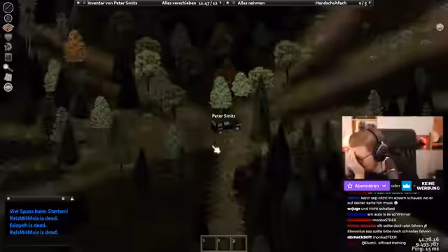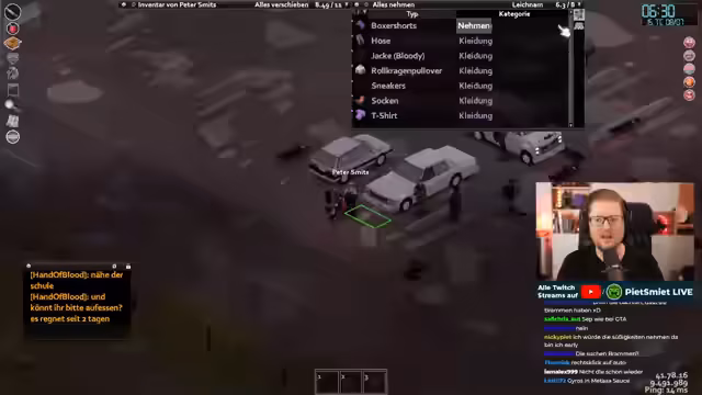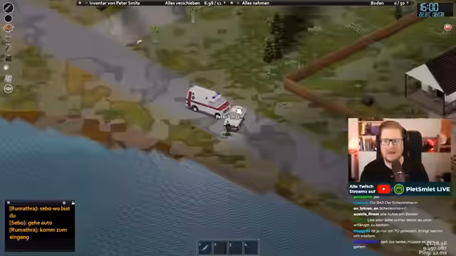 01:09:13Nach dem technischen Check und Ankündigung startete der eigentliche Project Zomboid-Teil. Streamer beschrieb sein unglückliches Gefühl und Schmerzen, konnte aber die genauen Ursache nicht benennen. Das Team aus Sepp und Bram war ebenfalls auf dem Server und man hatte Schwierigkeiten, sich in der Dunkelheit zu orientieren. Die ersten Schritte bestanden aus der Erkundung eines dunklen Hauses und der Feststellung, dass es bereits von anderen Spielern genutzt wurde. Die anfängliche Zieldsetzung war das Reparieren eines Autos, um einen Teamkameraden abzuholen.
