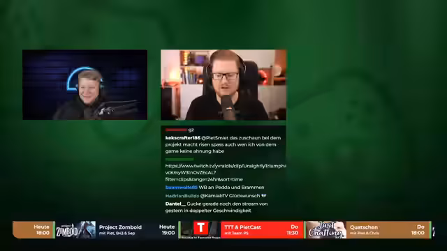00:26:43Das Reaktionsspecial beginnt mit der Vorstellung des Project Zomboid-Servers, auf dem sie spielen. Sie erwähnen stolz, durch ihre Aktivität einen Trend auf Twitch ausgelöst zu haben und den Server in den Charts platziert zu haben. Die ersten Clips zeigen chaotische Szenen wie versehentliches Überfahren von Mitspielern, den Ausfall der Stromversorgung und den Tod von Charakteren, wobei das Verhalten anderer Spieler als rücksichtslos kritisiert wird.