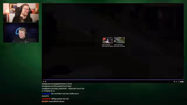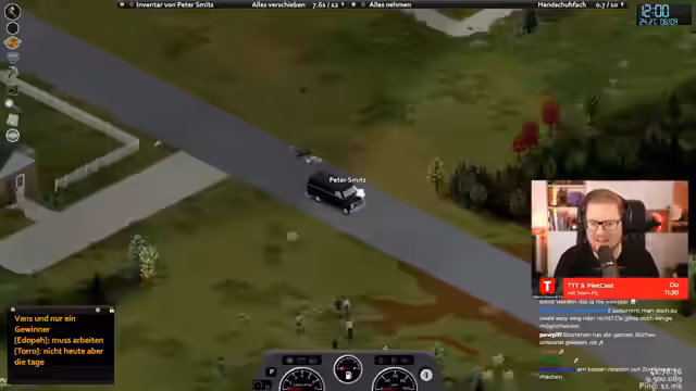 01:55:07Die beiden Streamer konnten sich anscheinend in der Nähe des anderen treffen, koordinierten aber die Fahrtrichtung nur ungenau. Es kam zu zahlreichen Missverständnissen zwischen Links- und Rechtsabbiegung aus der jeweiligen Fahrerperspektive. Die Fahrt führte quer durch die Landschaft, vorbei an mehreren Hindernissen. Ein sichtbarer Zombie und ein Hilfe suchender Spielern sorgten für zusätzliche Spannung, wurde aber nicht weiter beachtet. Die Koordination wirkte zäh und von ständigen technischen Unannehmlichkeiten geprägt.
