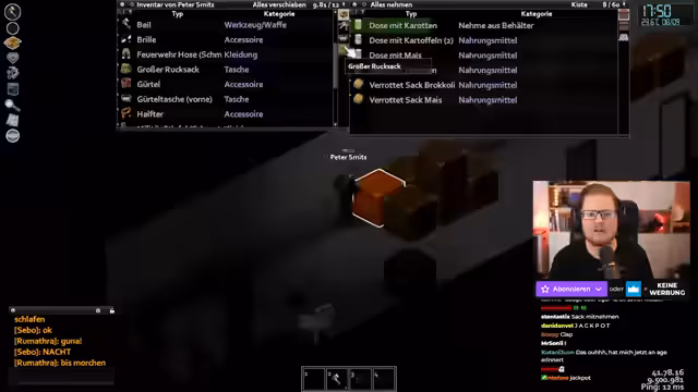 03:12:45Nachdem einige grundlegende Gegenstände gesammelt wurden, bereiten die Streamer eine ausführlichere Loot-Tour vor. Ein Teilnehmer ist für das Kochen der gefundenen Ressourcen zuständig, während der andere die Beute in einem nahegelegenen Gebäude lagert. Sie organisieren den Vorrat in bestimmten Schränken und diskutieren über die Effizienz ihrer Lagermethoden. Der Fokus liegt darauf, in der Dunkelheit aktiv zu bleiben, was die Risiken erhöht.