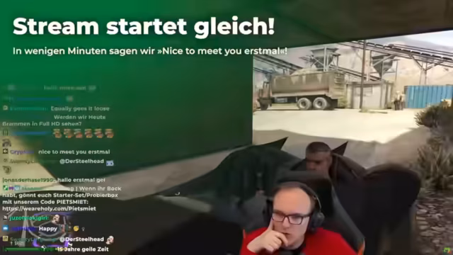 00:00:02Der Stream beginnt mit technischen Verwirrungen, da sich die Streamer gegenseitig der Maus beschuldigen und die Funktionsweise eines Feuerlöschers in einem Spiel unklar ist. Brams Kamera ist nicht korrekt ausgerichtet, was zu einem Streit führt. Die Streamer wechseln zu GTA, wo sie in eine zufällige Situation mit NPCs verwickelt werden und durch geschickte Aktionen Menschen retten müssen. Bram verliert sein Auto, was zu einem unvorhergesehenen Tod führt und die Stimmung abrupt ändert.