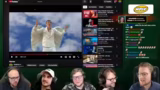 04:10:10Die Quizrunde wechselt zum Jahr 2021 und fragt nach dem Gewinner des ersten E-Card Invitationals. Sepp wird als Sieger identifiziert. Ein dramatisches Detail wird enthüllt: Bram hatte sich bei einem Event den Finger gebrochen. Die Gruppe erinnert sich an das Ereignis und lacht über die damalige Situation Brams verletzter Hand.