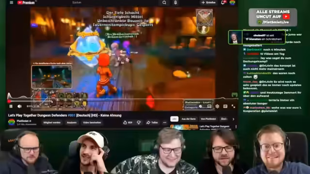 01:02:00Der erste Let's Play des Kanals war das Spiel Half-Life 1, das jedoch aufgrund des geringen Interesses nach nur drei Folgen abgebrochen wurde. Erwähnt wird auch das erste Koop-Let's Play zu Portal, das jedoch zunächst als Singleplayer-Durchgespielt begann. Die wöchentlichen News-Dinger und der Terraria Let's Play mit vier Teilnehmern, darunter Sepp, Johnny und Hadi, als erstes Multiplayer-Let's Play mit mehr als zwei Personen, werden als Meilensteine der frühen Inhalte beschrieben.
