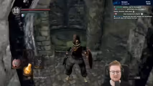 00:41:43Der Streamer erklärt, dass Soulkeepers am Montag startet und sein Run am Freitag beginnt. Er kann zwar morgen starten, aber es gibt noch keine Regeln. Morgen geht die Webseite online. Der Plan war, in der Woche zu trainieren, aber er ist drei Tage alleine in Paris. Er bedankt sich für Subs. Der Streamer erinnert sich an eine Notiz, dass er am Weihwand vorbei und dann rechts rum muss. Er sucht nach einem bestimmten Item, das kostenlos ist. Er umläuft zwei Gegner und findet den Kriegersäule. Er fragt, ob das Endring gespielt wurde und wann das nächste Soulkeeper-Turnier startet. Er pinnt eine Chatnachricht an. Das Bed of Chaos darf nicht geschossen werden. Der Streamer erklärt, dass er von Mittwoch bis Freitag in Paris ist, mit IRL-Streams am Mittwoch und Donnerstag von einem Event. Christian ist spontan ausgefallen und Sepp springt ein.