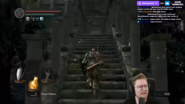 00:33:24Der Streamer überlegt, Petrus am Firelink-Schrein für zwei Humanities zu töten, um die Drop Chance zu erhöhen. Er fragt sich, ob Petrus einfach zu töten ist und ob er ihn später noch benötigt. Er setzt sich kurz hin, um sein Level zu erhöhen und Petrus zu testen. Kondition 20 ist das Ziel. Der Streamer fragt sich, wo in Dark Souls der Spielspaß liegt, betont aber, dass das Spiel nicht für jeden geeignet ist. Er besiegt Petrus und erhält tausend Seelen. Der Streamer springt in ein Loch und findet Heimatknochen. Er erklärt, dass Dark Souls wie Eden Ring nur für Masochisten ist. Er farmt Seelen und überlegt, ob er etwas verkaufen kann. Der Streamer findet Lloyds Talisman in einer Truhe, mit dem er Mimics einschläfern kann. Er steigt im Level auf und bedankt sich für verschenkte Subs. Er erklärt, dass Farmen bei den letzten Malen verboten war. Er fragt, ob Glitches erlaubt sind und ob Power Within erlaubt ist. Es wird erwähnt, dass Black Knight Waffen bei DLDU verboten waren und auch bei Soul Keepers verboten sind.