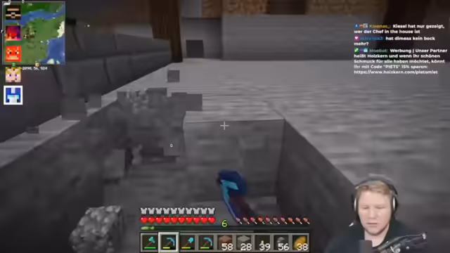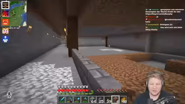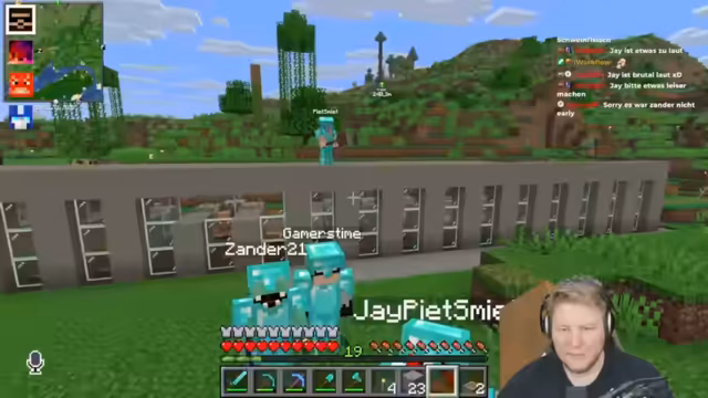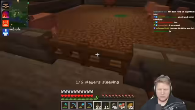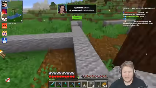 01:19:17Es wird bekannt gegeben, dass Paluten und Monte die Basis besucht haben und Paluten einen Zoo bauen möchte. Er bittet jeden Spieler um ein emotional bedeutsames Tier für seinen Zoo und setzt eine Frist bis zum nächsten Abend. Die Spieler diskutieren, welche Tiere sie beisteuern könnten, wobei der Streamer bereits eine Katze ausgewählt hat und Paluten ihn mit Schweinen in Verbindung bringt. Parallel dazu wird das 'Altenheim' für Dorfbewohner weiter ausgebaut. Sebastian erklärt, wie die Dorfbewohner gezüchtet, in ihre Zimmer gebracht und durch Handel mit Stöcken zu Emeralds gebracht werden. Das Ziel ist es, verschiedene Berufe und Verzauberungen wie Mending, Feather Falling und Unbreaking 3 zu erhalten. Die Spieler arbeiten zusammen, um die Dorfbewohner effizient zu transportieren und die Struktur des Altenheims zu optimieren, wobei auch humorvolle Vergleiche zu Rollatoren und Zwangsbefruchtung gezogen werden.