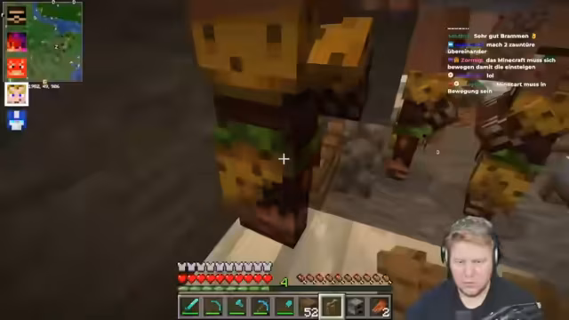 03:31:40Für den nächsten Tag sind größere Aktionen geplant, darunter das Sprengen eines gesamten Stücks Land, was jedoch als riskant eingeschätzt wird, da es auf dem Server in der Vergangenheit zu Abstürzen geführt hat. Die Spieler kämpfen weiterhin mit den Villagern, die ihren Beruf nicht annehmen oder sich nicht verwandeln wollen. Es wird vermutet, dass dies an herumstreunenden Villagern oder fehlenden Arbeitsblöcken liegt. Die Frustration steigt, da die Effizienz-Verzauberung 5 immer noch nicht gefunden wurde, obwohl der Chat behauptet, dass es diese Stufe nicht gibt oder sie nur schwer zu finden ist. Die Spieler versuchen, die Villager in ihre vorgesehenen Bereiche zu bringen, um die Trades zu ermöglichen, aber es kommt immer wieder zu Problemen mit entlaufenen oder unkooperativen Dorfbewohnern. Die Suche nach der perfekten Axt mit Effizienz 5 wird zu einer zentralen Herausforderung.