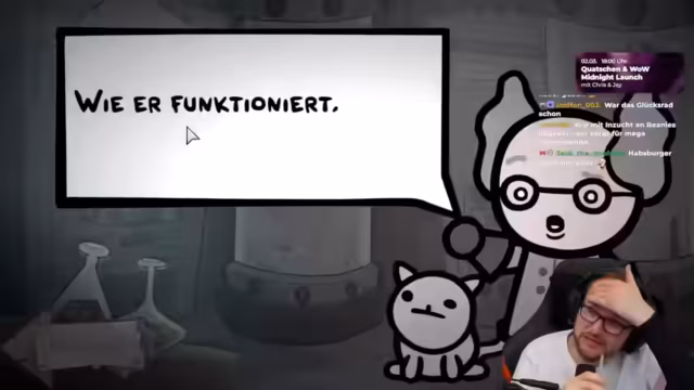 00:00:00Der Stream beginnt mit einem Prediction-Game und dem Versuch, die Spielmechaniken von Mewgenics zu verstehen. Es werden Begriffe wie Metamorphose erklärt und es wird über das Bumsen der Katzen zur Zucht neuer, starker Katzen gesprochen. Der Streamer testet den UI-Bereich und stellt fest, dass er sich nicht vergrößert. Er ist begeistert vom Sound und dem Stil des Spiels, der an The Binding of Isaac erinnert.