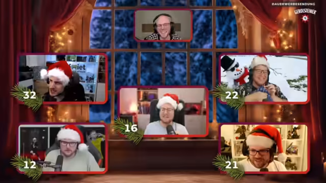 00:11:59Die Weihnachtsshow beginnt um 19 Uhr, wobei der aktuelle Stream als Pre-Show dient. Währenddessen kämpft Chris mit technischen Problemen: Sein Mikrofon reguliert automatisch die Lautstärke herunter, was auf eine fehlerhafte Einstellung in VideoNinja zurückzuführen ist. Parallel werden bereits erste Wichtelgeschenke diskutiert, wobei Unklarheiten über den Ablauf des Schrottwichtelns bestehen. Andi hatte dazu offenbar keine klaren Vorgaben gemacht, was zu Verwirrung führt.