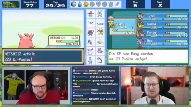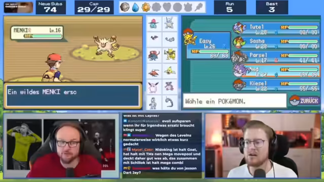08:28:30Die Spieler planen den weiteren Verlauf des Streams und der Soullink-Challenge. Es wird angekündigt, dass es am nächsten Tag keinen Stream geben wird, da bereits andere Termine verplant sind. Die Spieler äußern Bedenken bezüglich der Rotation ihrer Teams, insbesondere bei Wulpix, da es keine effektiven Attacken gegen bestimmte Pokémon hat. Gleichzeitig wird über die Möglichkeit diskutiert, in bestimmten Routen zu kampfen, um effektiver zu leveln.