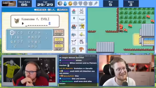 08:55:05Eine kurze Auseinandersetzung über Pokémon-Namen, wie Tabitha und Tabea, findet statt. Der Streamer kauft Items in der Stadt und erkundet verschiedene Routen. Es gibt Diskussionen über die Entwicklung von Pokémon und das Lernen neuer Moves. Der Fokus liegt auf der optimalen Nutzung der verfügbaren Ressourcen.