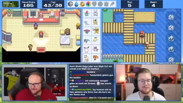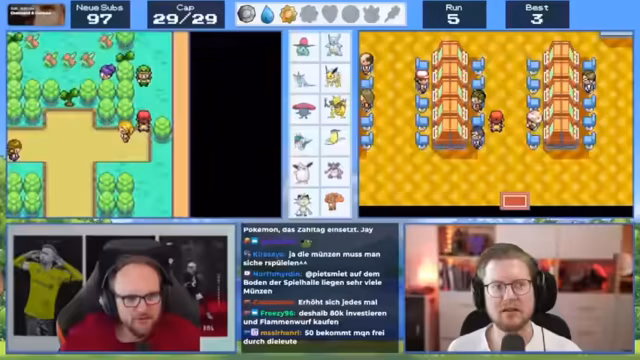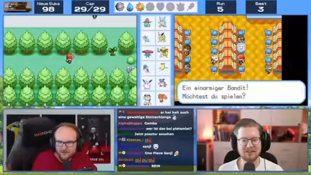 04:01:50Nach dem Casino besucht der Streamer wieder die Arena und wird von Pflanzen-Pokémon gestoßen. Er kehrt ins Pokémon Center zurück, um seine Pokémon zu heilen. Später entdeckt er das Versteck von Team Rocket im Casino. Er erfährt, dass man dort Münzen gegen TMs eintauschen kann.