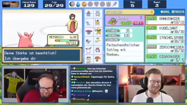 02:51:29Der Streamer verhängt Strafen, die mit Spenden verbunden sind, teilweise für 'Loot für die Welt'. Nach mehreren Regelverstößen wird Peter dazu verpflichtet, 100 Euro zu spenden. Dies geschieht als Strafe, nachdem der Streamer versehentlich ein verbotenes Pokémon benutzt hat. Der Streamer äußert seine Freude, dass Peter endlich ein Garados bekommt.