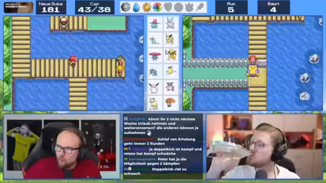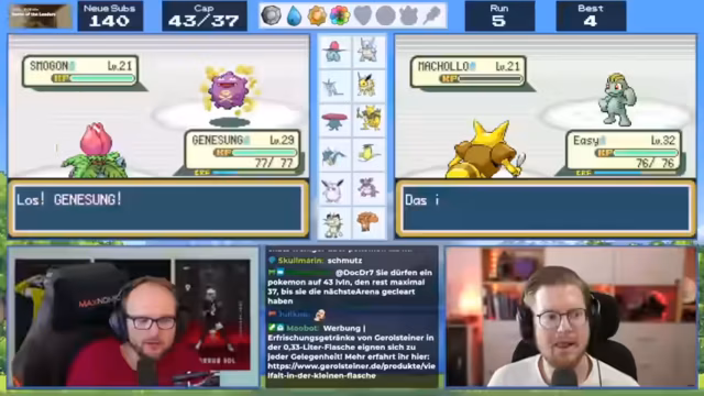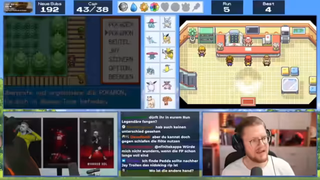 05:43:17Der Streamer diskutiert intensiv über seine Pokemon-Teamzusammenstellung und bekämpft verschiedene Herausforderungen im Spiel. Er analysiert die Verteidigungswerte seiner Pokemon wie Aquana und Giflor, wobei Aquana mit 41 Verteidigung das schwächste Pokemon im Team zu sein scheint. Der Streamer überlegt, welche Pokemon er einsetzen sollte, und erwähnt Strategien wie den Einsatz von Glass-Cannon-Kadabre für One-Hit-Kills. Er diskutiert auch über verschiedene Items wie Supertränke und Hypertränke, um seine Pokemon zu stärken.
