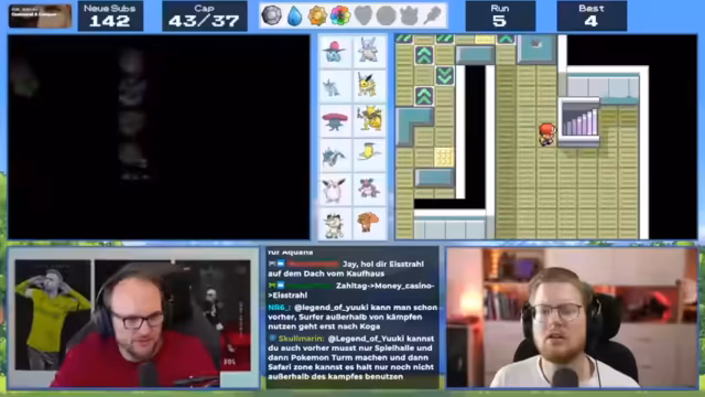 05:28:42Das Team navigiert durch das Versteck von Team Rocket und stößt auf Navigationsprobleme. Der Streamer findet einen Aufzug, der jedoch einen speziellen Öffner benötigt. Während der Suche nach diesem Öffner entdeckt der Streamer Schattenglas, das nützlich gegen Sabrina sein könnte. Er muss jedoch zurück, um den Weg fortzusetzen.