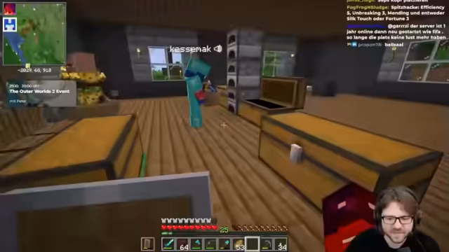 00:41:48Der Streamer plant, bis Sepp kommt, weiterzubauen und dann entweder mit Sepp zu farmen oder einen Rundgang zu machen. Er möchte Glaswände einbauen und erwähnt, dass sein Hund wieder anfängt, Bälle zu klauen und Latschen zu tragen, was auf eine Besserung hindeutet. Die hohen Tierarztrechnungen werden thematisiert, wobei der Streamer die Frage aufwirft, was passiert, wenn man sich Tierwohl nicht leisten kann. Er empfiehlt eine Tierversicherung für neue Haustiere. Es wird über Länder gesprochen, die Tieren Rechte einräumen, wobei Dänemark als Beispiel genannt wird. Der Streamer baut weiter am Altenheim und freut sich auf die Nether-Sprengung um 20 Uhr. Er ist an einem Projekt beteiligt, bei dem Sand und Stein abgebaut werden, um TNT-Duper für eine Sprengung vorzubereiten. Sepp kommt online, und es wird über die allgemeine Regelung bezüglich Festungen und Spawnern im Nether gesprochen, die nicht für andere abgebaut werden sollen.