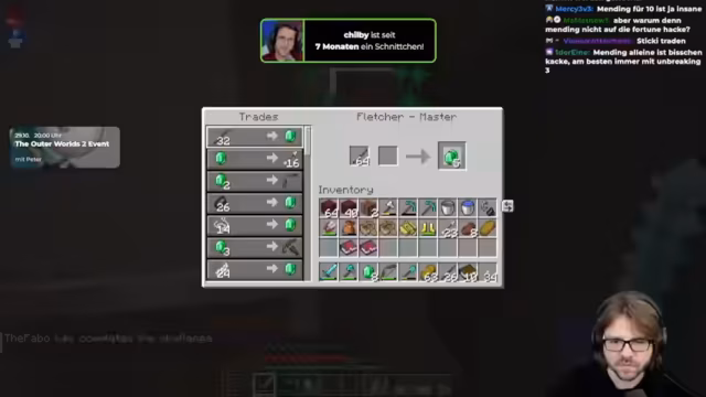 03:20:21Es wird erörtert, dass das Kombinieren von Verzauberungsbüchern an einem Amboss kostengünstiger ist, bevor sie auf Werkzeuge angewendet werden. Die Spieler versuchen, einen Dorfbewohner zu finden, der das Efficiency 5 Buch verkauft, was sich als schwierig erweist, da einige Villager nicht richtig funktionieren oder die Trades zu teuer sind. Es wird der Verdacht geäußert, dass die Villager auf dem Server verbuggt sein könnten, was zu Frustration führt. Trotzdem gelingt es einem Spieler, das begehrte Efficiency 5 Buch zu erwerben. Die Notwendigkeit, einen geeigneten Platz für den Villager zu finden, wird betont, um zukünftige Trades zu sichern und die Ausrüstung weiter zu verbessern. Die Diskussion über die Funktionalität der Villager und die Server-Performance zieht sich durch diesen Abschnitt.