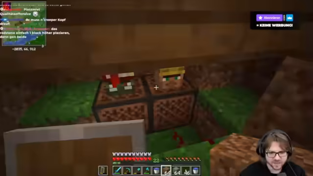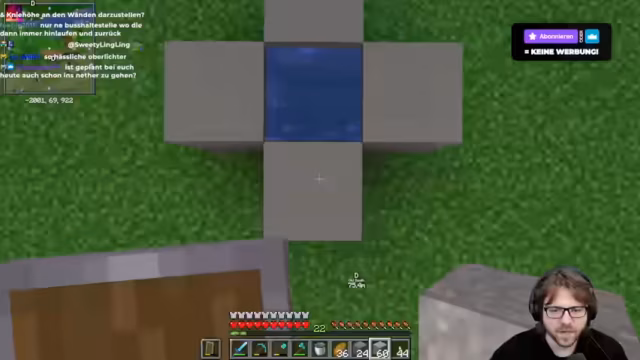 00:09:20Der Streamer widmet sich dem Minecraft-Projekt 'Altenheim' und plant den weiteren Bau. Er erwähnt, dass er am Vortag Säulen gebaut hat und nun überlegt, was als Nächstes ansteht. Eine Idee ist ein schöner Garten mit Teich, da er bereits mit der Planierung begonnen hat. Es wird überlegt, den zweiten Stock zu bauen und die Betonfrage diskutiert. Der Streamer erwähnt, dass Sepp um 19 Uhr dazukommen wird, während Dennis und Jay möglicherweise nicht dabei sind. Die Öffnung des Nethers um 20 Uhr wird als wichtiges Ereignis hervorgehoben, da man dann ein Portal bauen und Festungen finden könnte. Es wird ein kurzer Rundgang durch das 'Altenheim' gemacht, wobei die 'Villager-Fickfabrik' und die umgezogenen Tiere gezeigt werden. Experimente mit einer Klingel und Redstone-Schaltungen werden ebenfalls erwähnt, sowie die Platzierung von Creeper-Köpfen und einem Squid-Kopf als Dekoration.