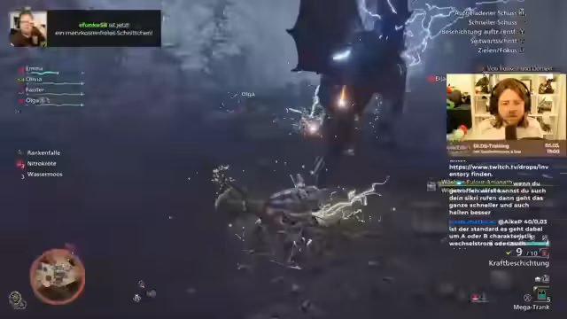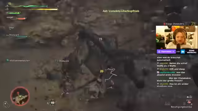 01:09:05Der Kampf gegen den Rathian gestaltet sich für Chris und seine Mitspieler schwieriger als erwartet. Das Monster agiert sehr defensiv und entzieht sich dem Kampf, was die Spieler frustriert. Spezielle Angriffe, wie das Springen auf den Gegner, funktionieren nicht zuverlässig. Der Streamer hat das Gefühl, nur 'passiv' am Kampf teilzunehmen, und beschreibt das Gefühl, gegen den Boss nur herumzulaufen, anstatt ihn aktiv zu bekämpfen. Der Fokus verlagert sich auf das Versuchen, das Monster zu grounden, um es anschließend effektiver zu schaden.