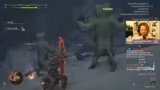 05:27:52Das Stream-Team konzentriert sich das Eierracken-Monster an, ein Affe mit einem Rücken voller Eier. Sie nutzen verschiedene Taktiken, darunter das Besteigen des Monsters und das Platzieren von Bomben. Während des Kampfes wird das Monster durch mehrere Angriffe verwundet und rennt mehrmals weg, was zu chaotischen Szenen führt. Ein Spieler versucht erfolglos, das Monster zu fangen, während die anderen es weiterhin attackieren.