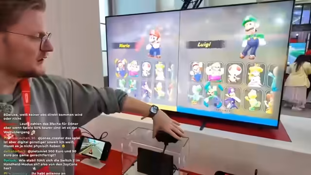 05:10:37Es erfolgt eine plötzliche Umschaltung zu einer Live-Übertragung aus Paris, wo man an einem Nintendo Switch 2 Event teilnimmt. Die Ankündigung erfolgt etwas abrupt aufgrund eines Embargos, das vorherige Informationen verhinderte. Vor Ort befindet man sich in einer schönen Location und hat die Möglichkeit, die neue Hardware und Spiele wie Mario Kart World anzuspielen. Es wird erwähnt, dass es bestimmte Vorgaben für die Übertragung gibt, z.B. dass Sepp nicht nur den Bildschirm filmen soll, sondern auch die Person, die spielt. Neben Mario Kart werden auch andere Highlights wie Mario Party, Metroid Prime 4, Donkey Kong und geupgradete Zelda-Teile erwähnt. Der erste Eindruck von Mario Kart World ist positiv, obwohl es sich um eine alte Map handelt. Die Soundkulisse wird als insane beschrieben und es wird erwähnt, dass 100 Leute vor Ort das Spiel spielen. Es wird spekuliert, dass 200cc erst später im Spiel verfügbar sein wird. Insgesamt ist die Stimmung positiv und die Vorfreude auf die kommenden Stunden, in denen man die neue Hardware und Spiele ausprobieren kann, ist groß.