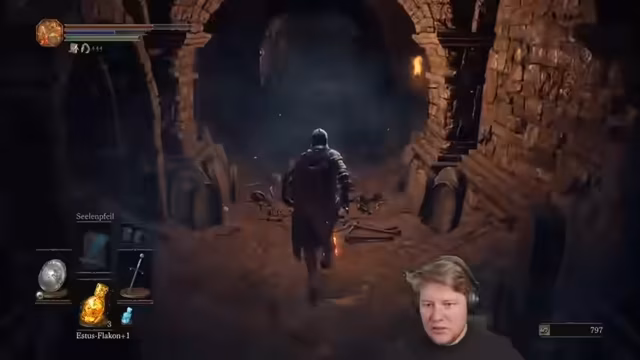 04:21:57Nachdem er die Kanalisation erkundet hat, konzentriert sich der Streamer darauf, wertvolle Gegenstände wie Titanitscherben zu sammeln, um seine Waffen zu verbessern. Er entdeckt eine geheime Passage in der Ruinenlandschaft, die ihm den Weg zu einer neuen Region, der Untoten Siedlung, ebnen könnte. Er plant, diesen Weg zu nutzen, um zukünftige Reisen zu verkürzen und wertvolle Ressourcen effizienter zu sammeln.