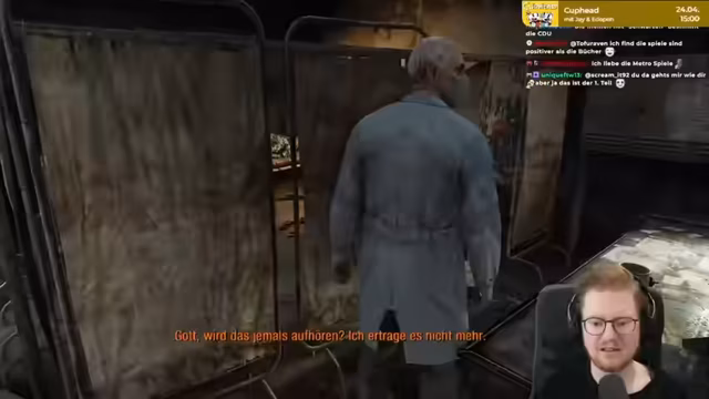 06:50:24Der Stream beginnt mit einer Rückblende in die Vorgeschichte des Spiels 'Metro 2033'. Der Protagonist, Artyom, befindet sich in einem chaotischen Kampf gegen unbekannte Gegner. Nach einem schnellen Tod im Tutorial startet der Streamer entspannter und erläutert die grundlegende Umgebung: die Metro-Tunnels unter Moskau. Er interagiert mit der Umgebung, sammelt Gegenstände wie ein Hunter-Tagebuch und stellt fest, dass die Menschen in den Tunnels verzweifelt und in ständiger Trauer leben. Die Geschichte beginnt, als der mysteriöse Hunter auftaucht und Artyom eine Mission übergibt.