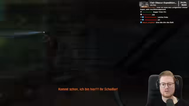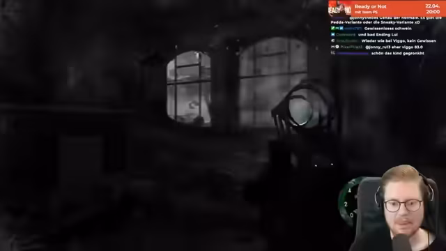 10:28:41Nachdem der Zug angehalten hat, muss der Streamer durch ein Schlachtfeld schleichen. Er muss feindliche Soldaten ausweichen oder per Kopfschuss eliminieren, ohne sich zu verraten. Die Nachtsichtbrille ist hier ein entscheidendes Werkzeug. Er trifft auf logische Fallstricke und nutzt den Chat für Taktiktipps. Nach mehreren Versuchen gelingt es ihm, durch die Front zu kommen und sich durch eine versteckte Passage abzusetzen.