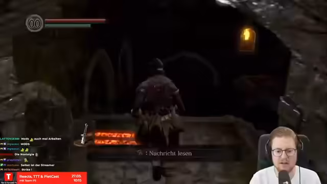 03:21:56Bei der Vorbereitung für das Soulkeepers-Event führt Pietsmiet einen Trainingsrun in Dark Souls 1 durch. Er experimentiert mit verschiedenen Taktiken, Waffen und Ausweichmanövern. Dabei stößt er auf Schwierigkeiten, da er sich an sein altes Moveset und spezielle Taktiken, wie die Steinrüstung, kaum mehr erinnert und sich auf die Grundlagen wie Blocken und Parieren konzentrieren muss, die jedoch unter Zeitdruck fehleranfällig sind.