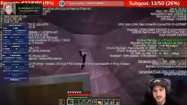 05:45:32Es werden Ausgrabungen im End durchgeführt, um Ausrüstung und Kisten zu finden. Der Streamer erkundet Festungen, wobei er auf Herausforderungen wie einen hohen Puls und kritische Situationen stößt, wie das Anschauen von Endermen, die zu Fast-Toden führen. Die Suche nach Ausgängen ist zentral, um durch den End zu reisen und Loot zu sammeln. Manuelle Screenshots werden gemacht, um Koordinaten zu sichern und den Weg zurückzufinden. Die Elytra wird effizient zum Fliegen genutzt, ohne Raketen verschwenden zu müssen.