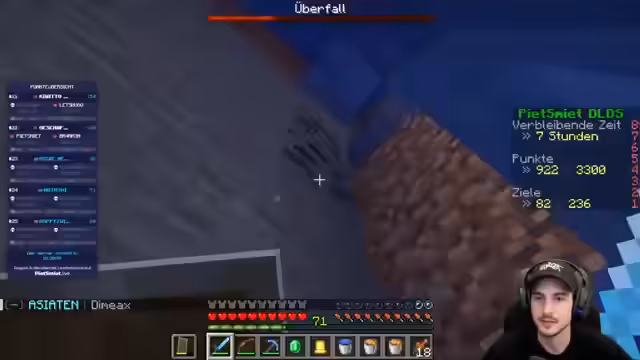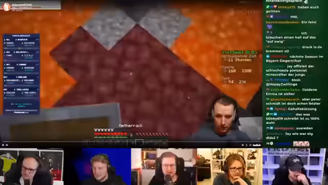05:14:12Nachdem sie ausreichend Ausrüstung und Ressourcen gesammelt haben, betreten die Streamer den Nether. Das Ziel ist es, Diamanten zu farmen, indem sie durch die Höhlen graben. Sie verwenden fortgeschrittene Techniken wie den Bau von Türen unter Wasser, um sicher in der gefährlichen Umgebung zu arbeiten und Ressourcen effizient abzubauen.