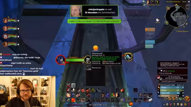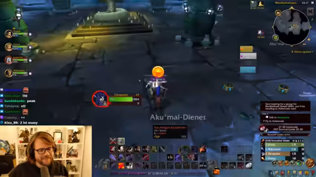 01:06:44Die Stream beginnt mit einer Diskussion über das Gameplay von World of Warcraft, wobei der Fokus darauf liegt, dass das Spiel für Zuschauer unübersichtlich sein kann, da zu viele Informationen auf dem Bildschirm angezeigt werden. Der Streamer konzentriert sich auf die wesentlichen Elemente wie Level, Name und Lebenspunkte. Er berichtet auch von einem speziellen Addon, das das Spiel Peggle während des Fliegens möglich macht, was er als sehr cool beschreibt und das an das altbekannte Flipper-Spiel erinnert.