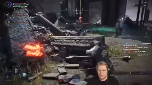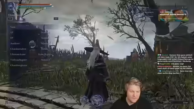 01:16:31Das Team beginnt einen kooperativen Bosskampf im Nachtdungeon von Elden Ring. Sie verabreden sich, eine bestimmte Bossgegnerin namens Madness zu jagen, und planen ihre Vorgehensweise, indem sie zuerst das nahegelegene Lager sichern. Der Streamer versucht, Mitspieler Sebastian durch den Dungeon zu führen, wobei er selbst eine aktive Rolle übernimmt, während Sebastian sich orientieren muss. Die Atmosphäre ist teamorientiert und zielt darauf ab, den Boss gemeinsam zu besiegen.
