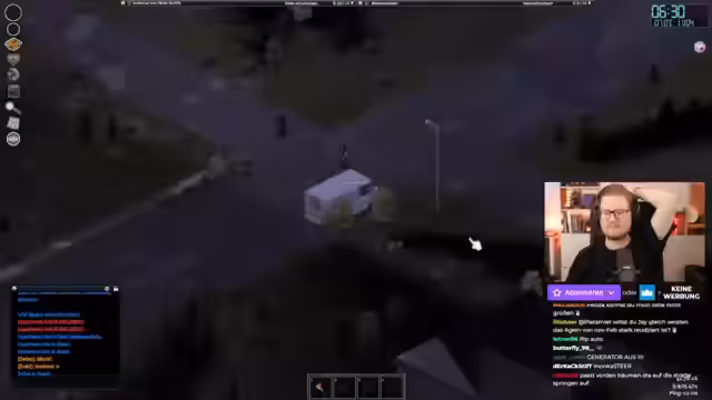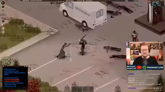 03:06:45Die Streamer versuchen, mit einem Auto durch eine Zombiehorde zu fahren, stoßen aber auf erhebliche Schwierigkeiten. Das Fahrzeug geht regelmäßig aus und sie können sich nur mühsam einen Weg bahnen. Es kommt zu mehreren Versuchen, Zombies vom Fahrzeug wegzuziehen, was jedoch nur teilweise gelingt und zu erheblichen Beschädigungen am Auto führt.
