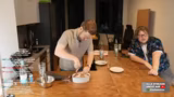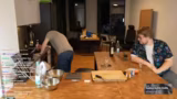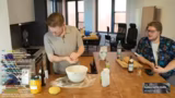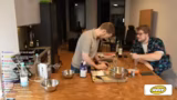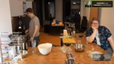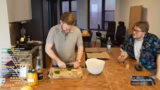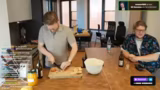 04:12:57Nach dem Hauptgang geht es an die Zubereitung der Nachspeise. Bram stellt eine Torte mit Mürbeteig, Marmelade und Baiser her, während es bei der Zubereitung zu technischen Problemen kommt. Der Mürbeteig ist extrem hart und lässt sich kaum verarbeiten. Parallel dazu wechseln sie das Gesprächsthema und berichten über ihre privaten Pläne, wie einen Aufenthalt in Hamburg und eine geplante Resident Evil-Veranstaltung.